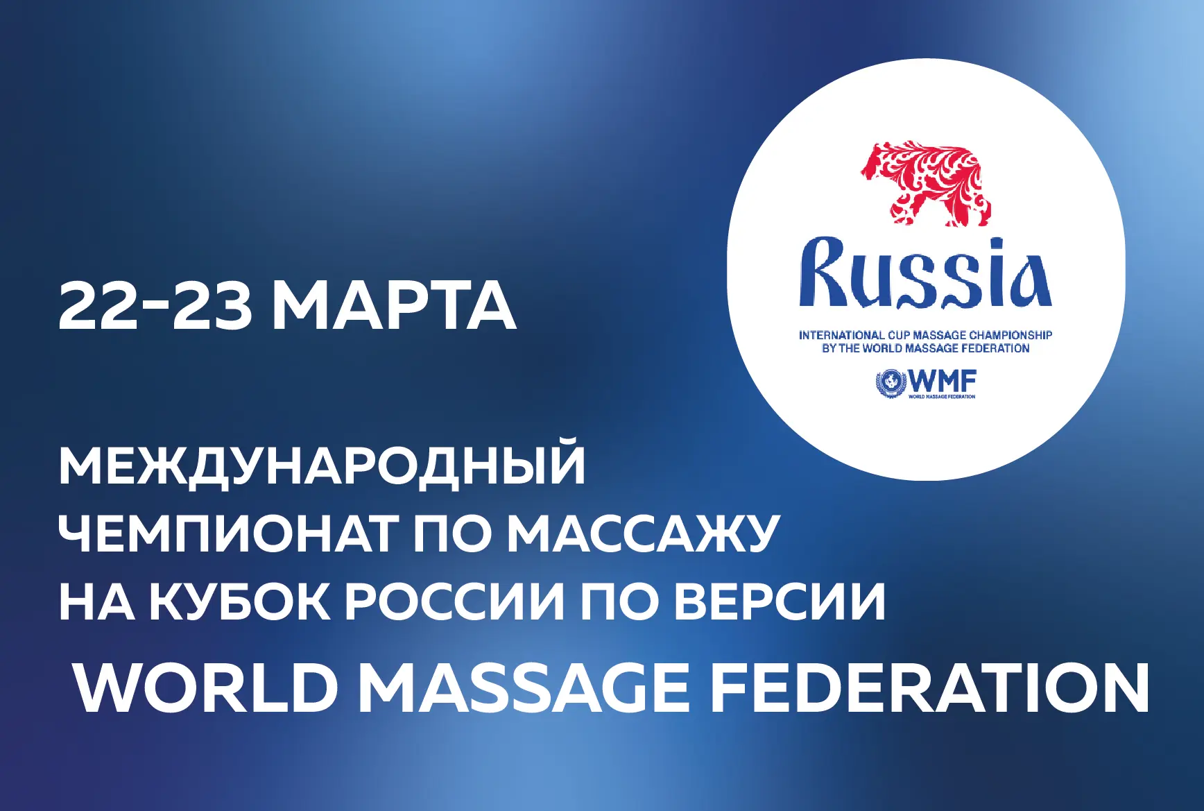 22-23 марта в городе Геленджик состоится Конгресс и Международный Чемпионат по массажу на кубок России по версии World Massage Federation.