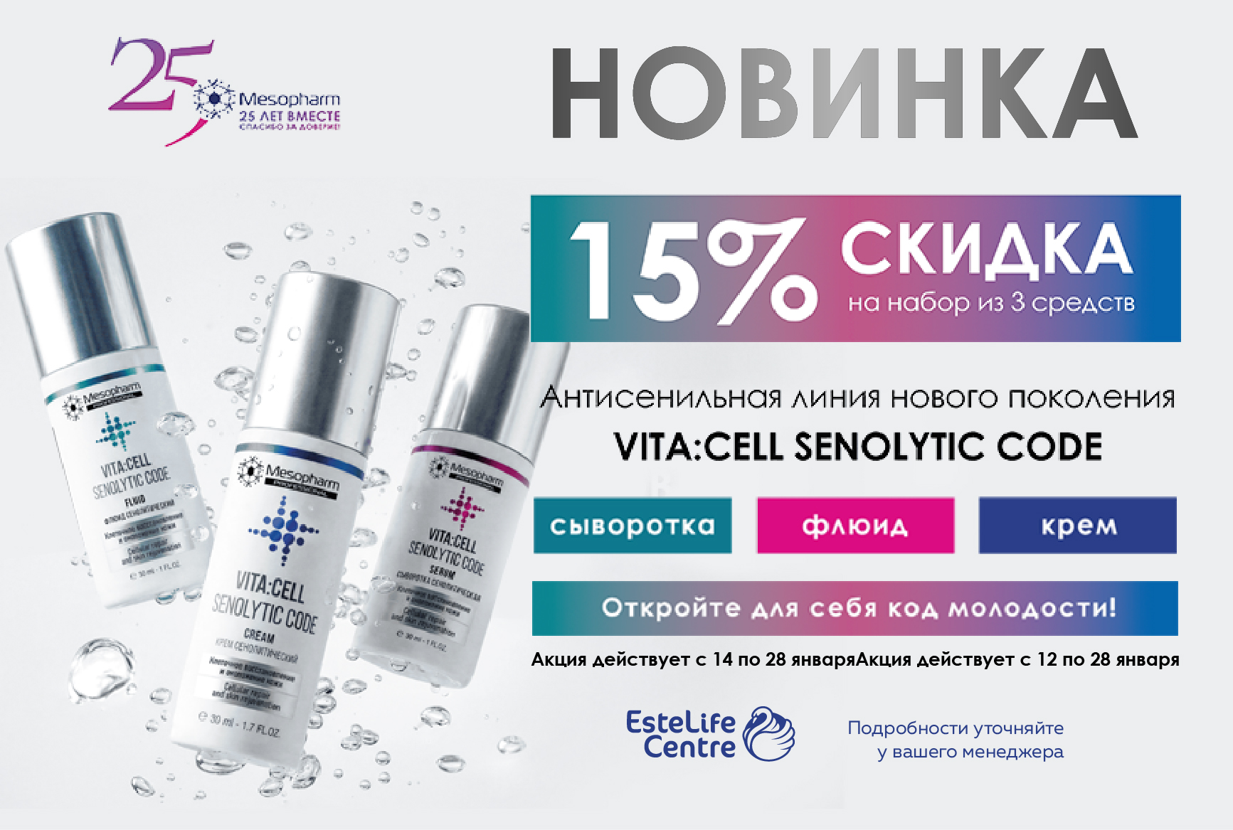 Условия: Скидка 15% Антисенильная линия нового поколения VITA:CELL SENOLYTIC CODE