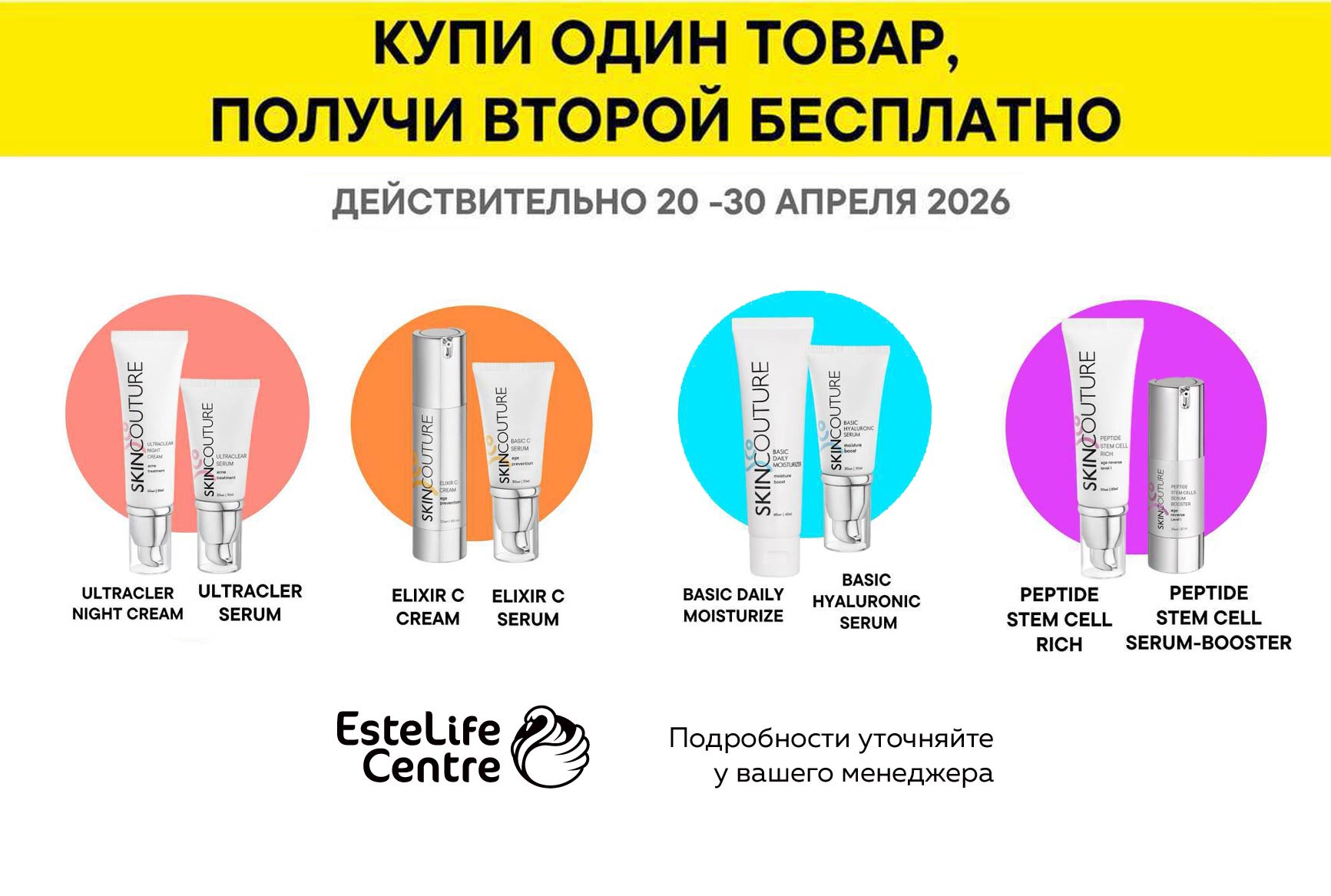 Дата проведения: с 20 по 30 апреляУсловия: При покупке от одного товара, второй получи бесплатно, акция действует на следующие наборы: